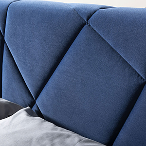 È un letto la cui testata è realizzata con la caratteristica lavorazione a trapuntatura geometrica che ne risalta la morbidezza e le conferisce una spiccata personalità. Può essere rivestita con molteplici tipologie di rivestimento presenti a campionario che trasmettono sensazioni differenti al tatto.
