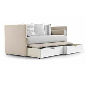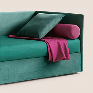 Double Space Nove è disponibile nelle versioni con Rete manuale, Rete automatica, Bauletto, Contenitori, e Basic nelle misure 80, 90, 100 e 120. Completamente sfoderabile grazie al veltro perimetrale. Disponibile in tutti i tessuti/pelli/ecopelli del campionario.