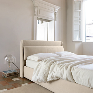 H10 La base sottile conferisce al letto un aspetto leggero e sospeso, mentre la testiera, con le sue linee decise e il bordo ricurvo che avvolge il cuscino imbottito, diventa il fulcro dell’intera struttura, trasformandosi nel protagonista indiscusso della stanza. Con la possibilità di personalizzare ulteriormente il letto scegliendo due cuscini separati, per un comfort ancora maggiore e un tocco di versatilità nell’arredamento.