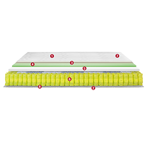 La sua struttura interna è costituita da un innovativo molleggio indipendente che, non necessitando di supporti perimetrali in Touch Foam, consente un ricircolo d’aria totale, che non ha eguali.